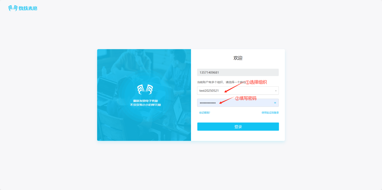 Step 2: Select organization, enter password, click "Login" for successful login.