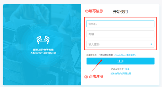 【To use the SpiderSheet product, you must first register. After successful registration, you can log in to use the product】