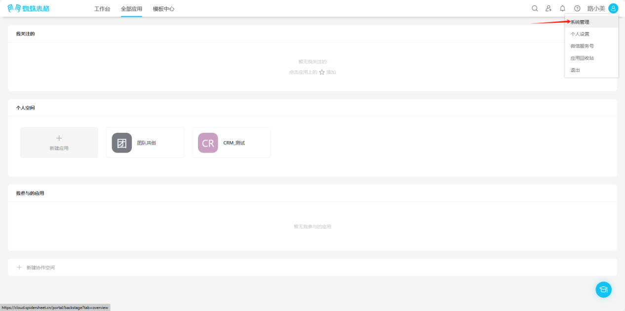 Step 1: Log in to the administrator account, click on System Management in the upper right corner profile