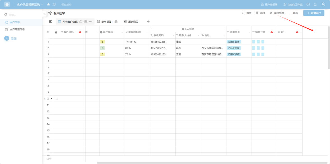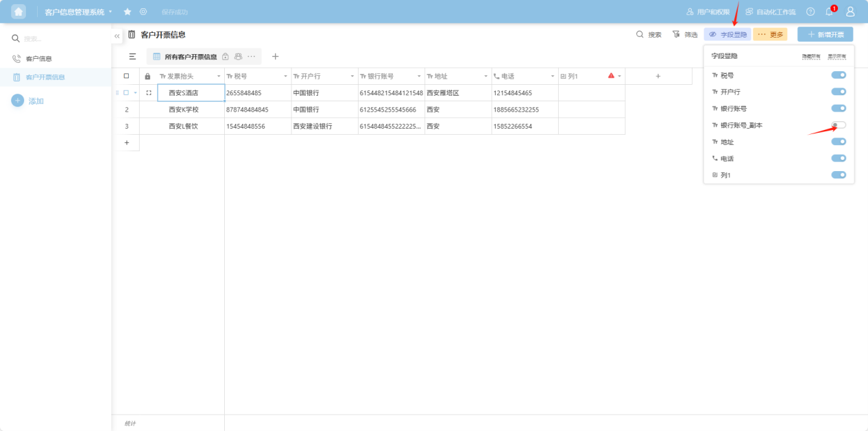 Step 3: Hidden columns can be restored via the "Show/Hide Fields" operation in the upper right corner of the table.