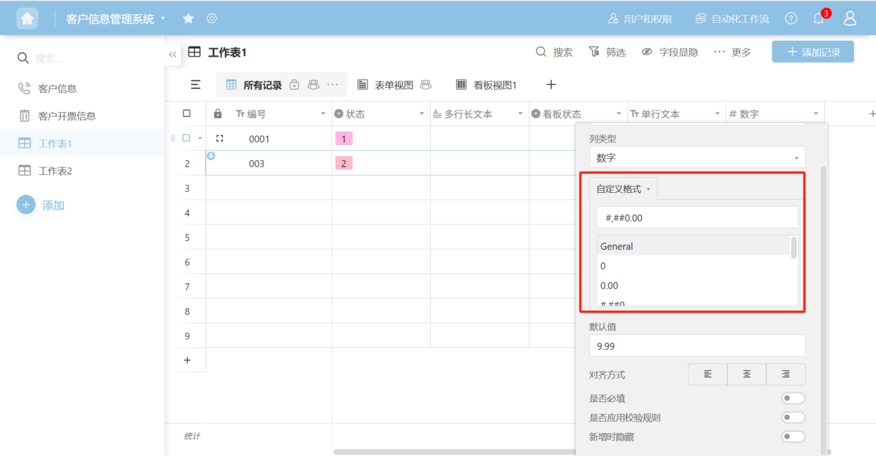 - Default format - Decimal places: Set the number of decimal places for the data.