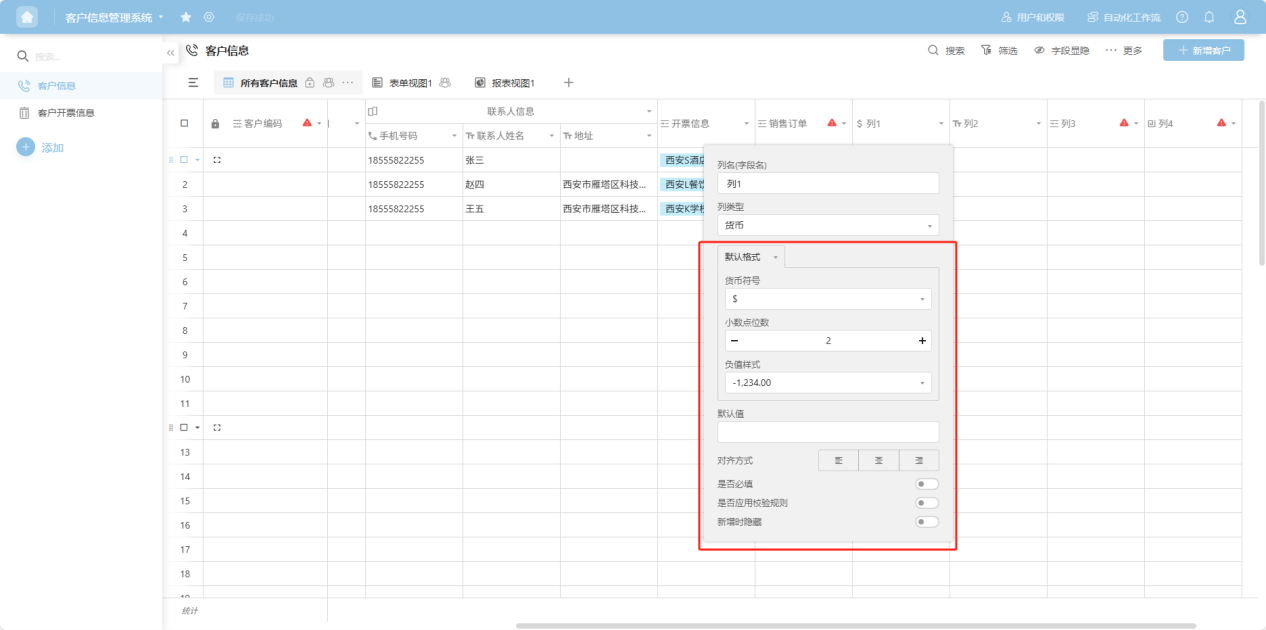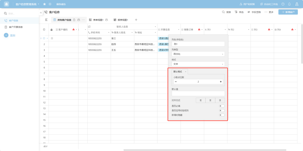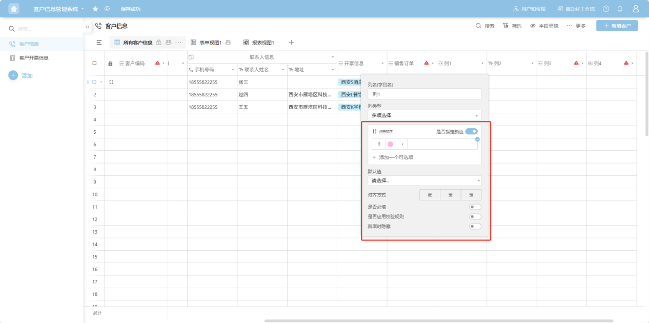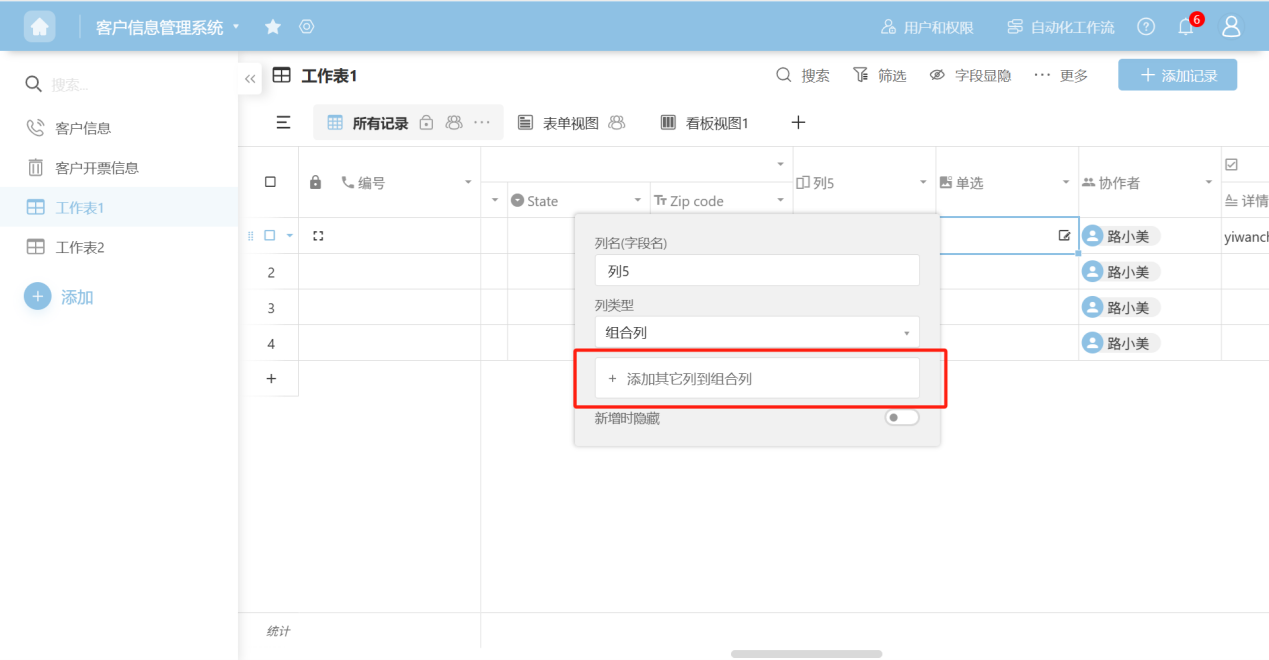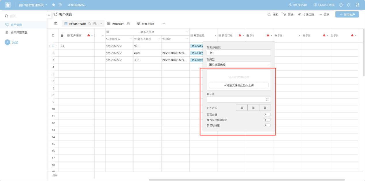 Step 4: In the column edit box, edit the column name, column type, and configure the corresponding edit items for that column type.