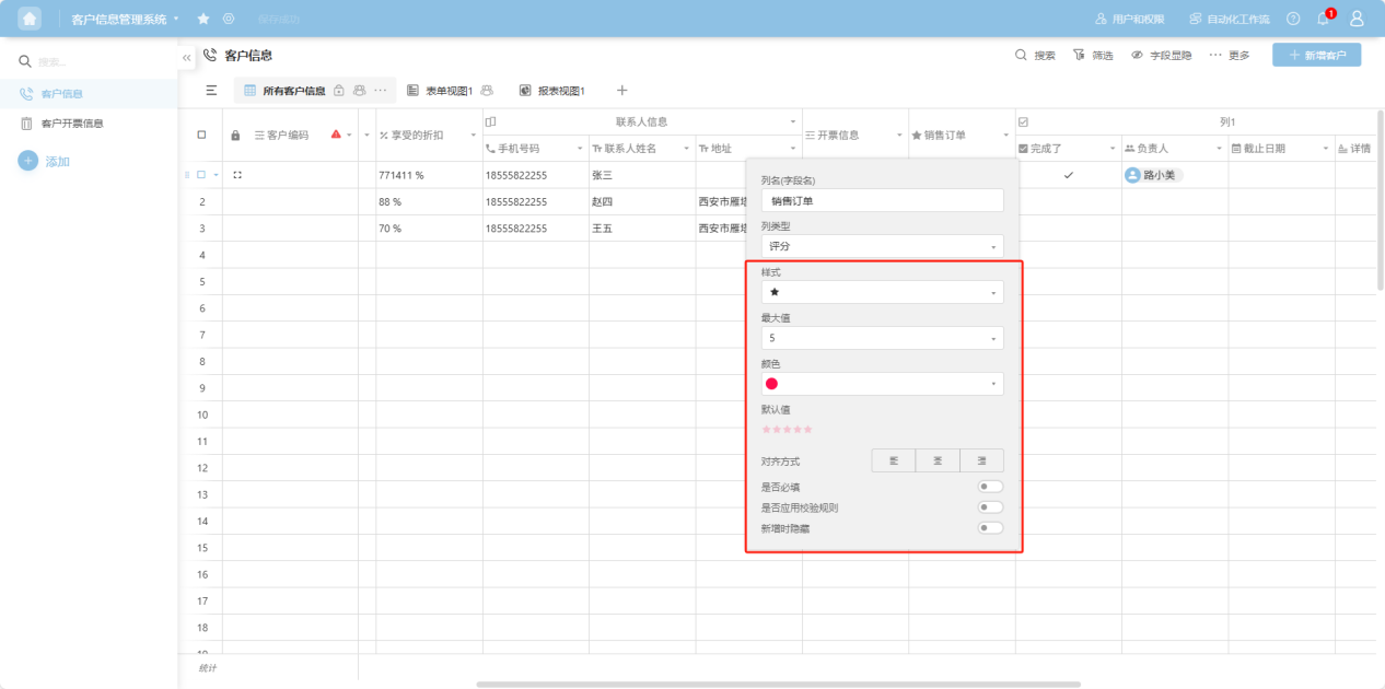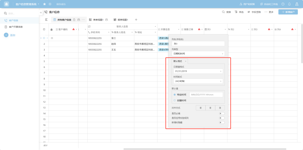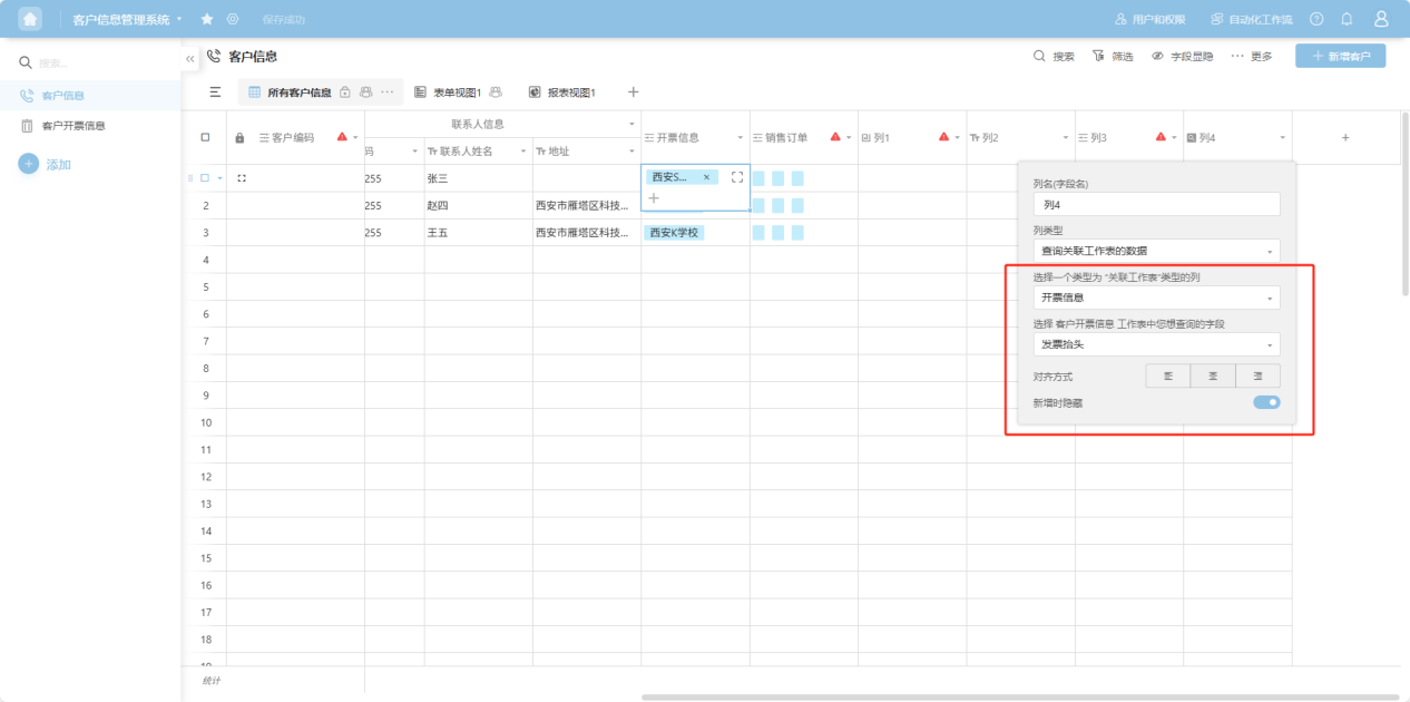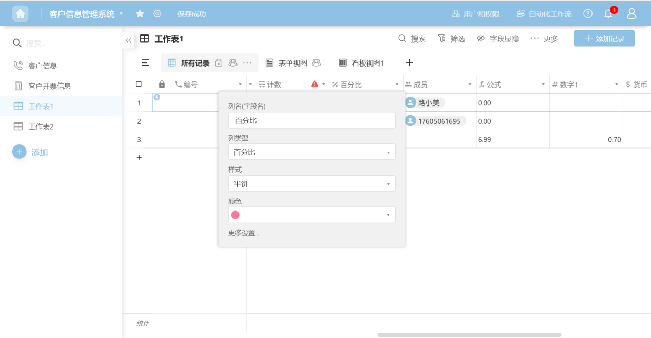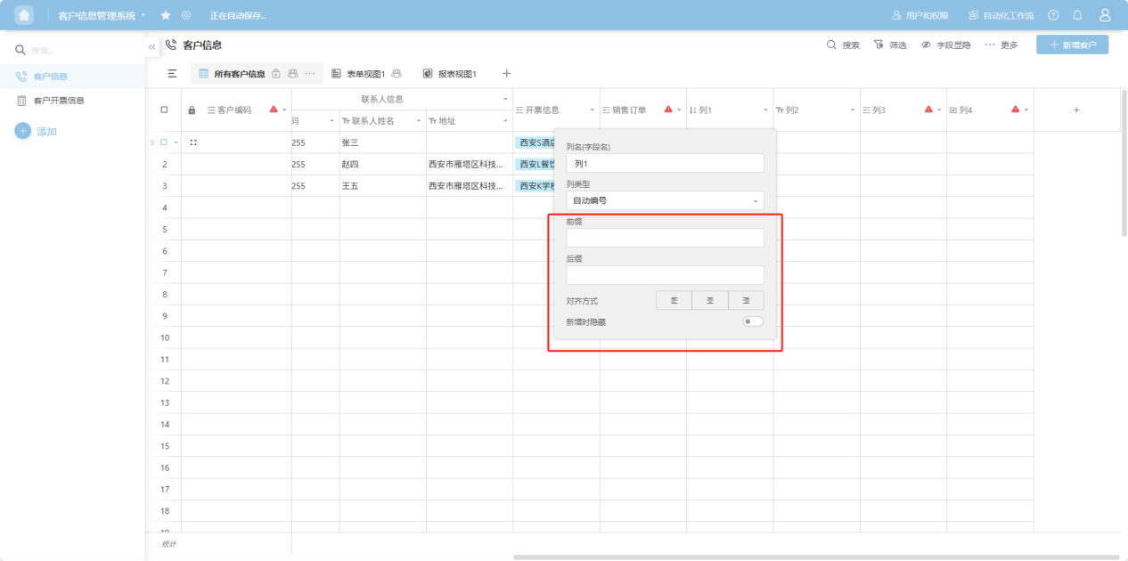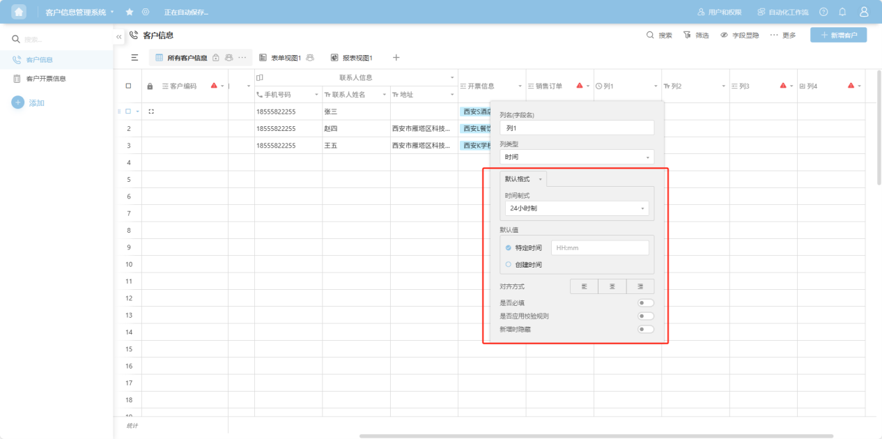 Step 4: In the column edit box, edit the column name, column type, and configure the corresponding edit items for that column type.