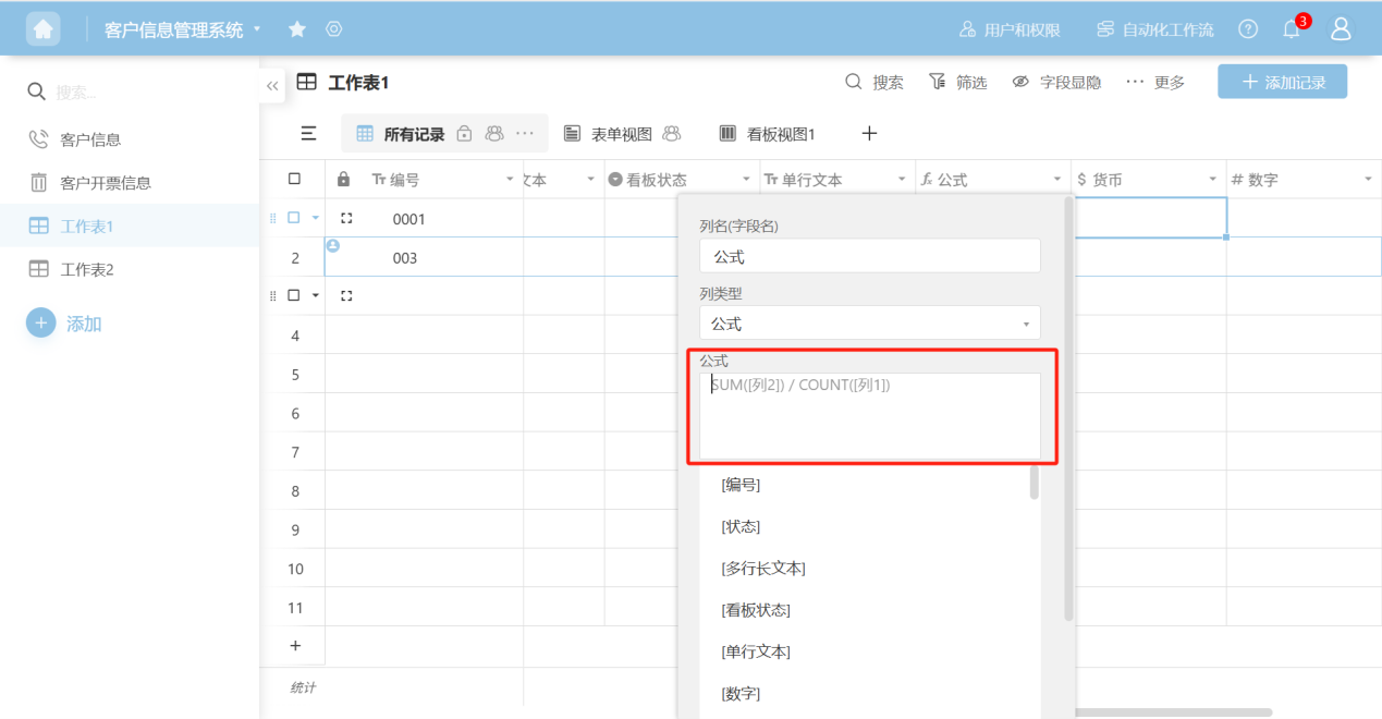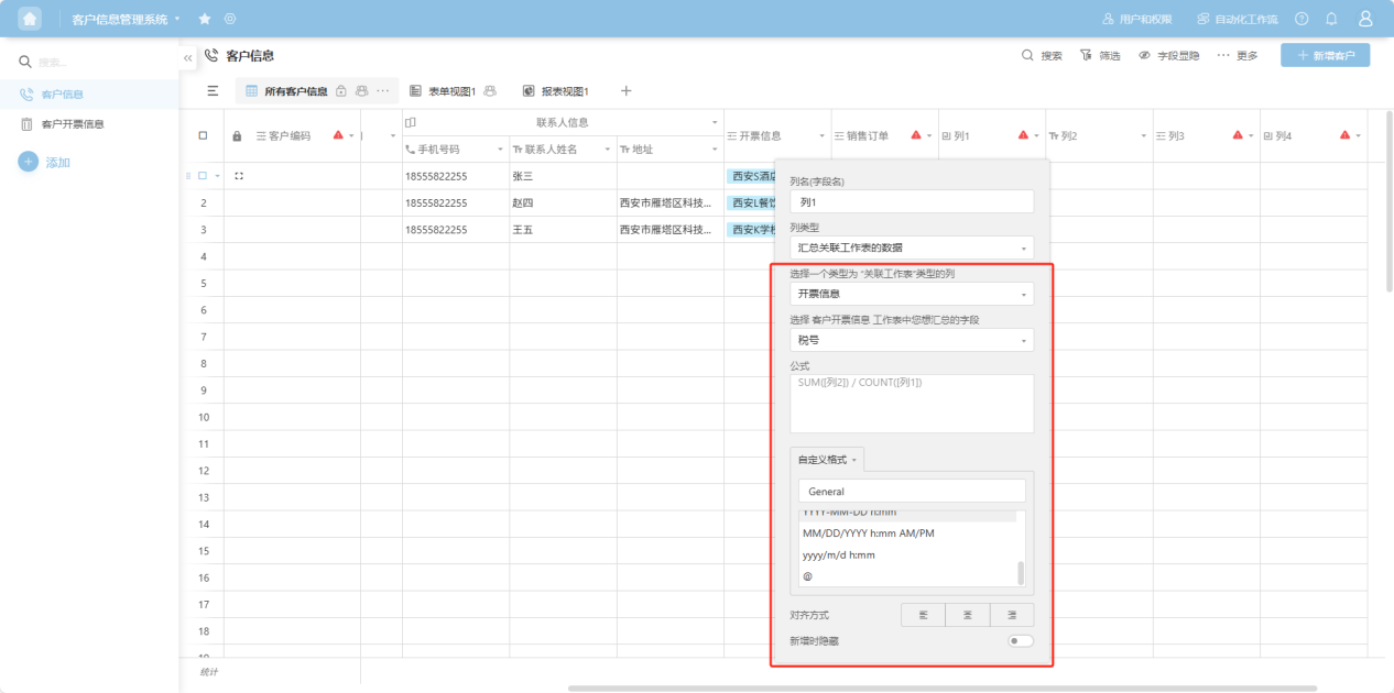 - Formula: Follow the prompts to select the required columns or functions to generate the formula.