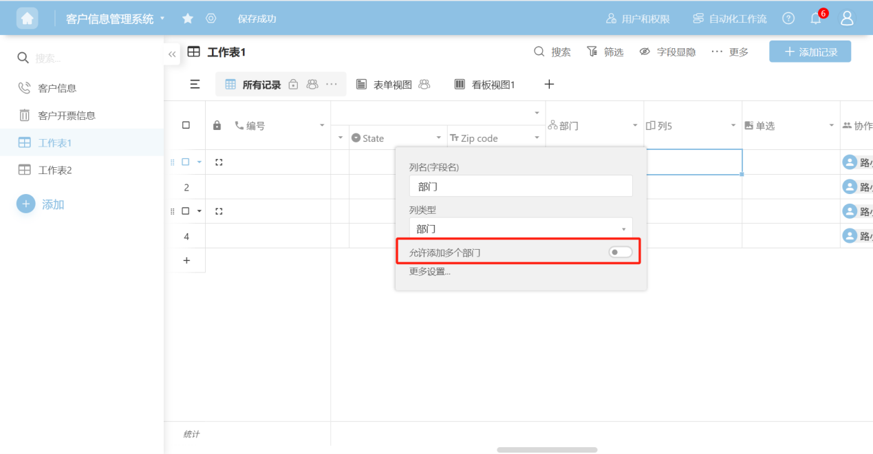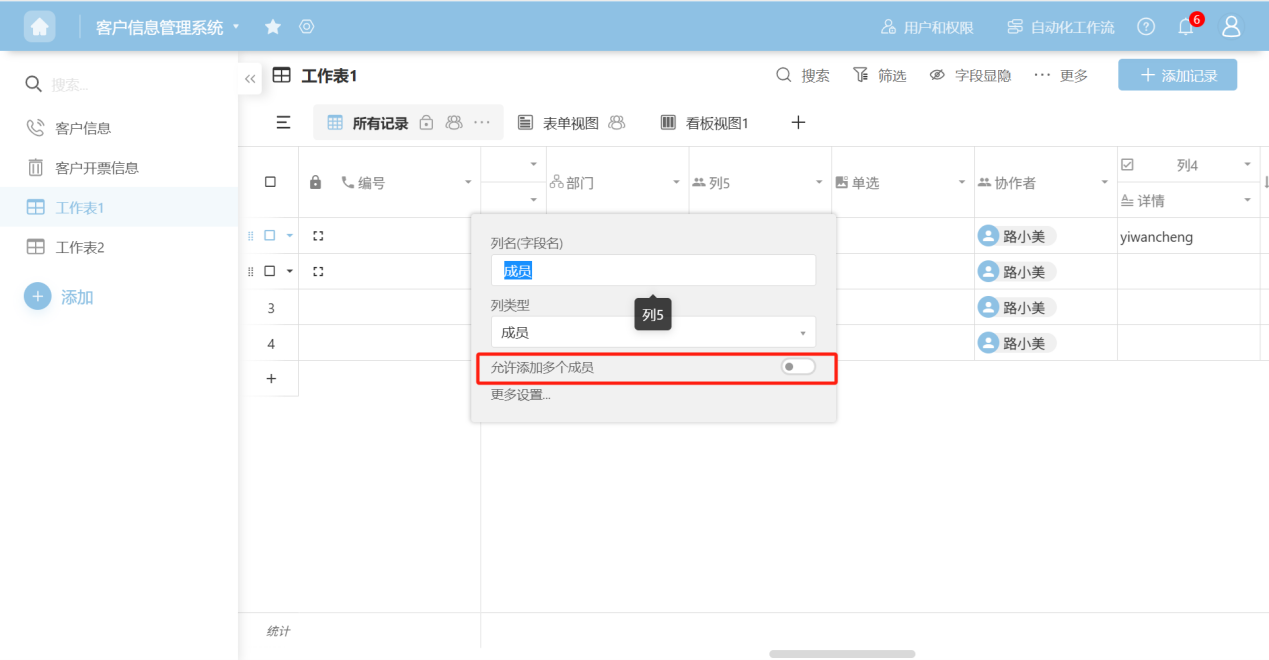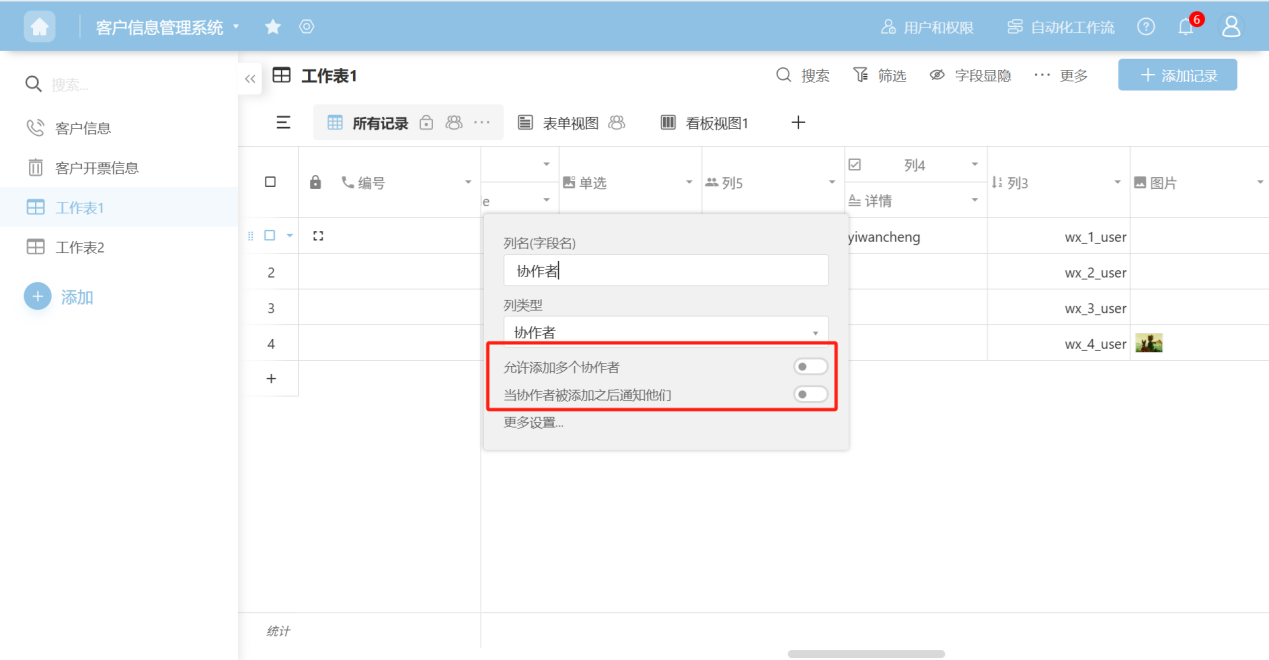 - Allow adding multiple collaborators: Turn on this switch to allow adding multiple collaborators to each record.