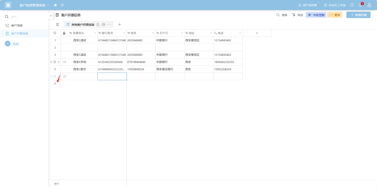 Step 2: Click the ”+“ below the last row of data to add a blank row.