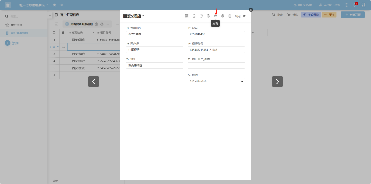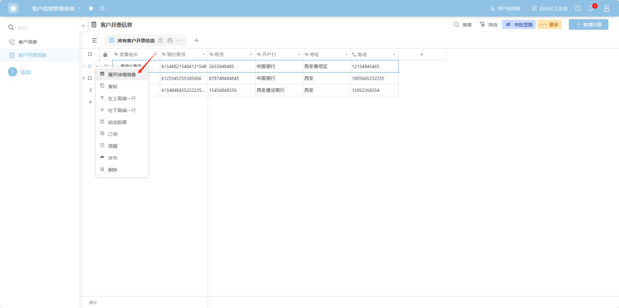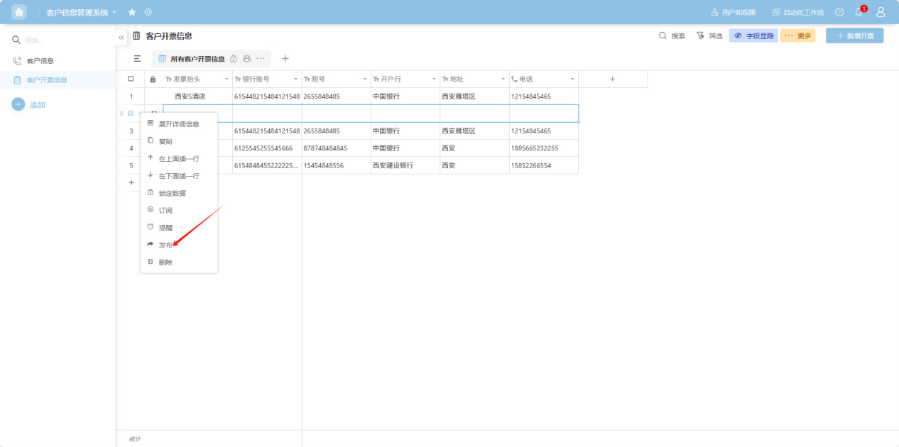 Step 3: The row details view opens. On this page, you can perform operations such as editing, locking, setting reminders, subscribing, publishing, printing, and deleting the row data, each explained in the following sections.