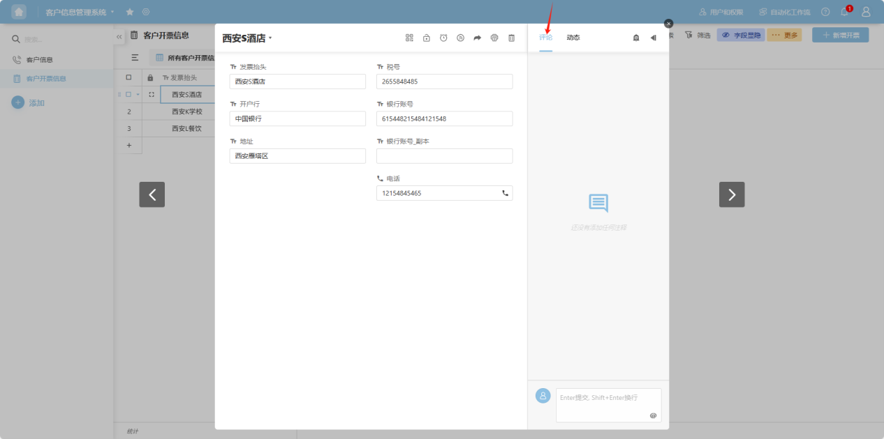 Step 3: On the opened details page, select the “Comments” tab to view comments from collaborators on this row of data, enabling instant communication.