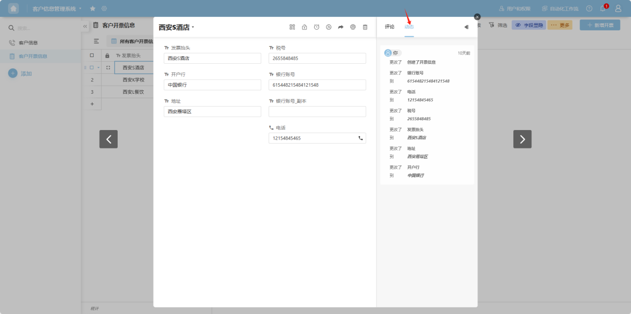 Step 3: On the opened details page, select the “Activity” tab to view the operation history for this row of data.
