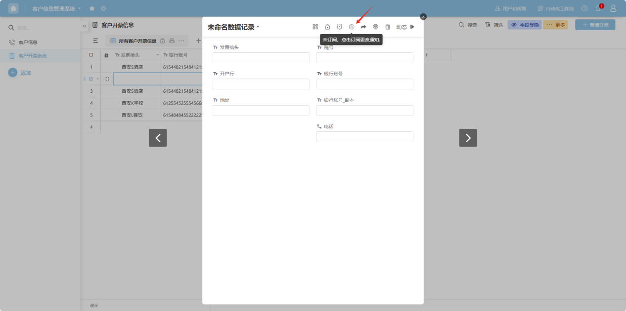 ” (Subscription) icon to subscribe to the row. Notifications will be sent when this row's data changes. Click again to unsubscribe.