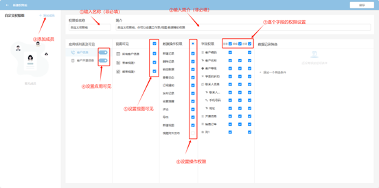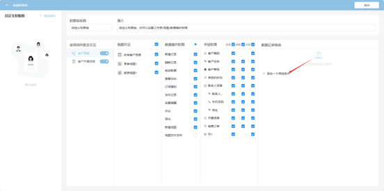 Step 4: In the popup page, set permissions sequentially. The finest granularity can support field-level create, read, update, and delete operations. After completing the settings, click "Save" to take effect.