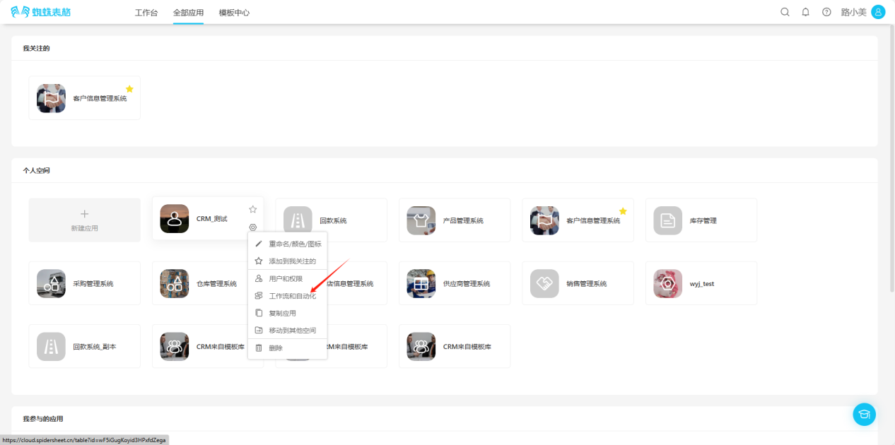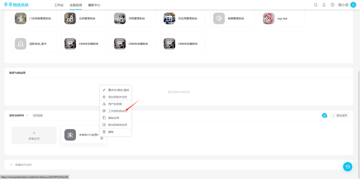 - From the workspace left application list or application cards under all applications, enter the application you want to set up automated workflow for, click "Automated Workflow" in the upper right corner to enter the automated workflow settings page.