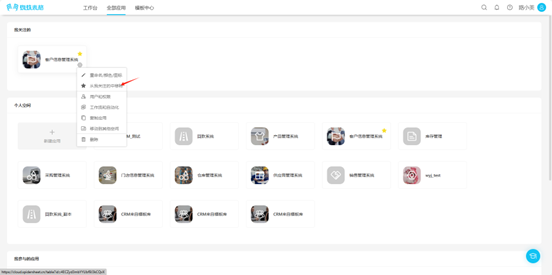 - From the workspace left application list or application cards under all applications, enter the application you want to remove from favorites, click the "★" to the right of the application name, the icon changes to "☆" or click the "