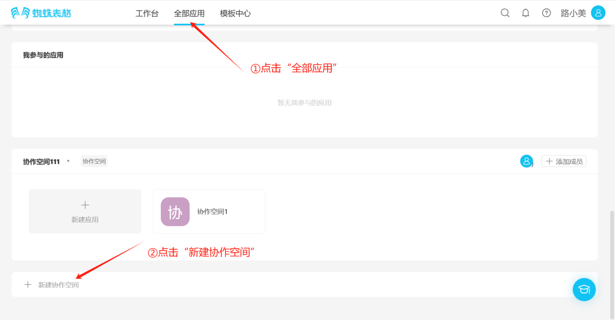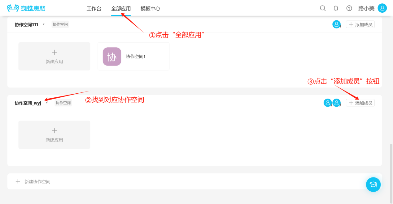 Step 1: Click "All Applications", find the corresponding collaborative space, click the "Add Member" button to the right of that collaborative space to open the "Add Member" popup.