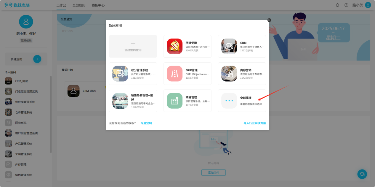 Step 2: Enter the "Create Application" popup or directly click Template Center, select an appropriate template, click "Install Now", click "All Templates" to view more templates.