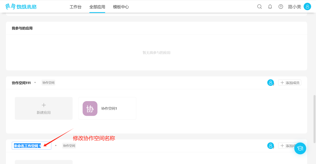 Step 2: Modify the collaborative space name.