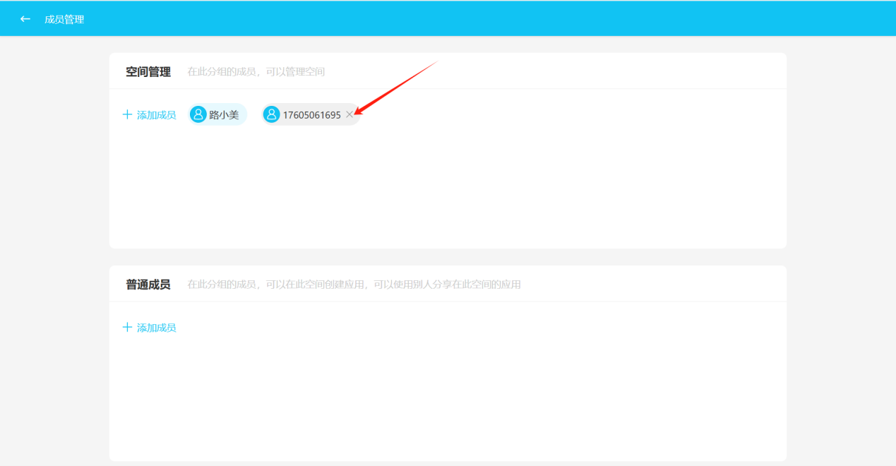 Step 4: If the member's name appears under the corresponding module in the member management page, it indicates successful member addition.