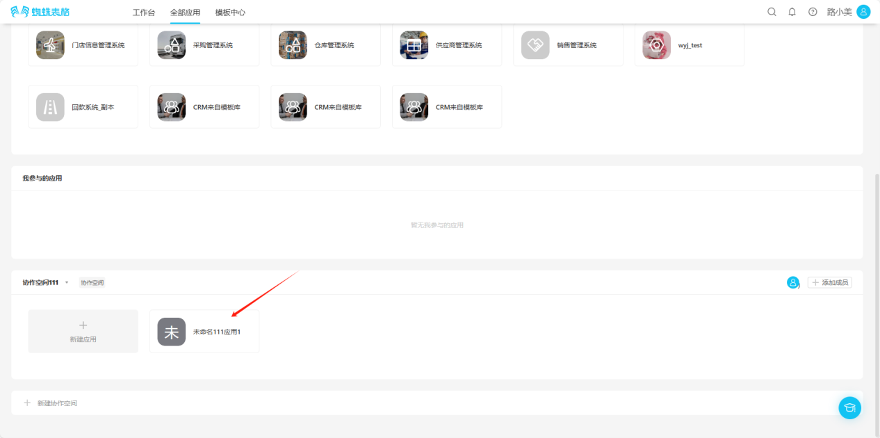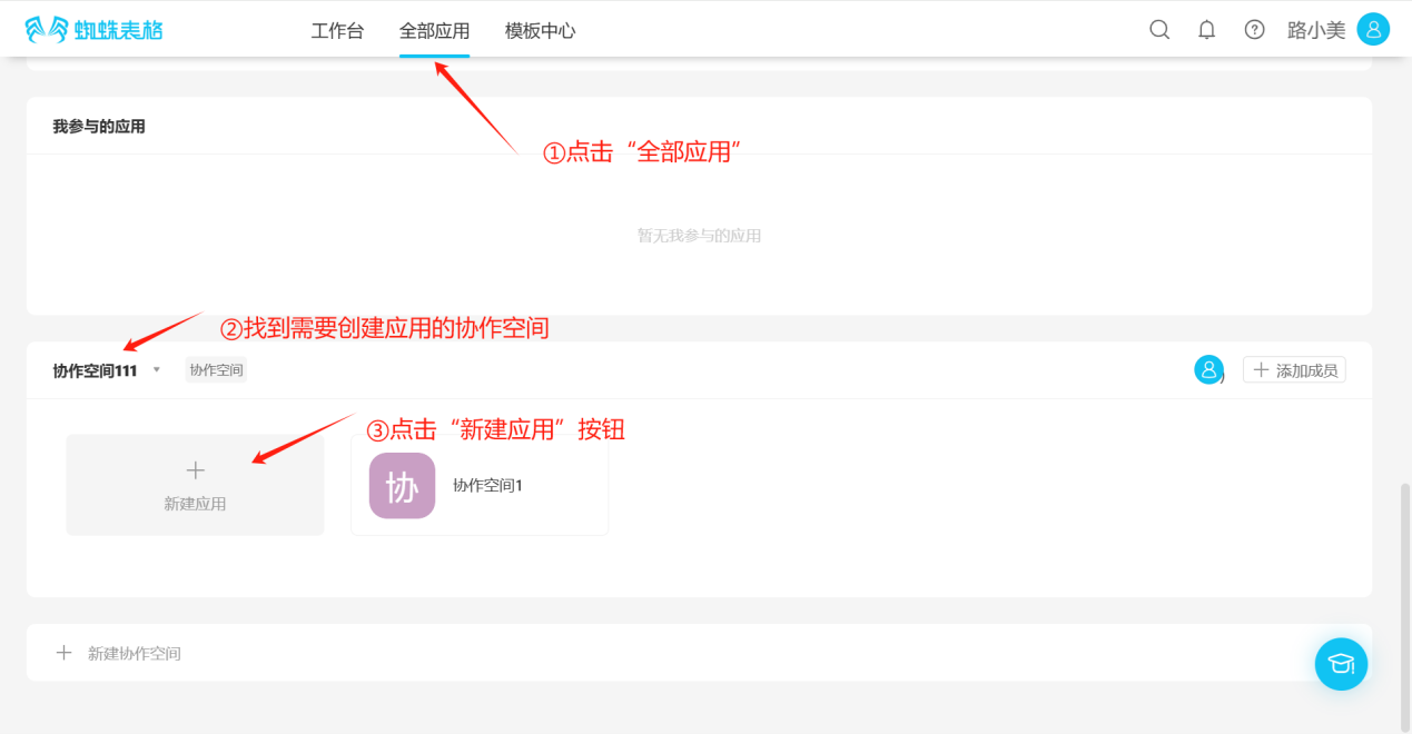 Step 1: Click "All Applications", find the collaborative space where you want to create an application, click the "Create Application" button to open the "Create Application" popup.