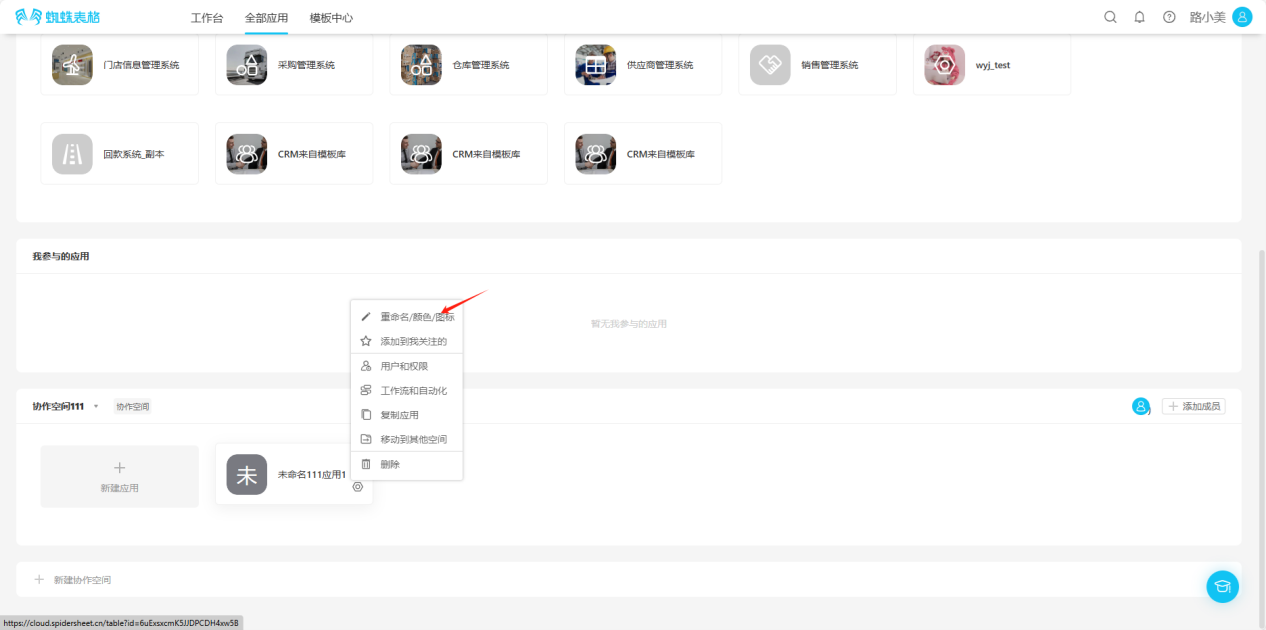 Step 1: Click the inverted triangle symbol to the right of the collaborative space name, open the edit list, click "Space Rename".