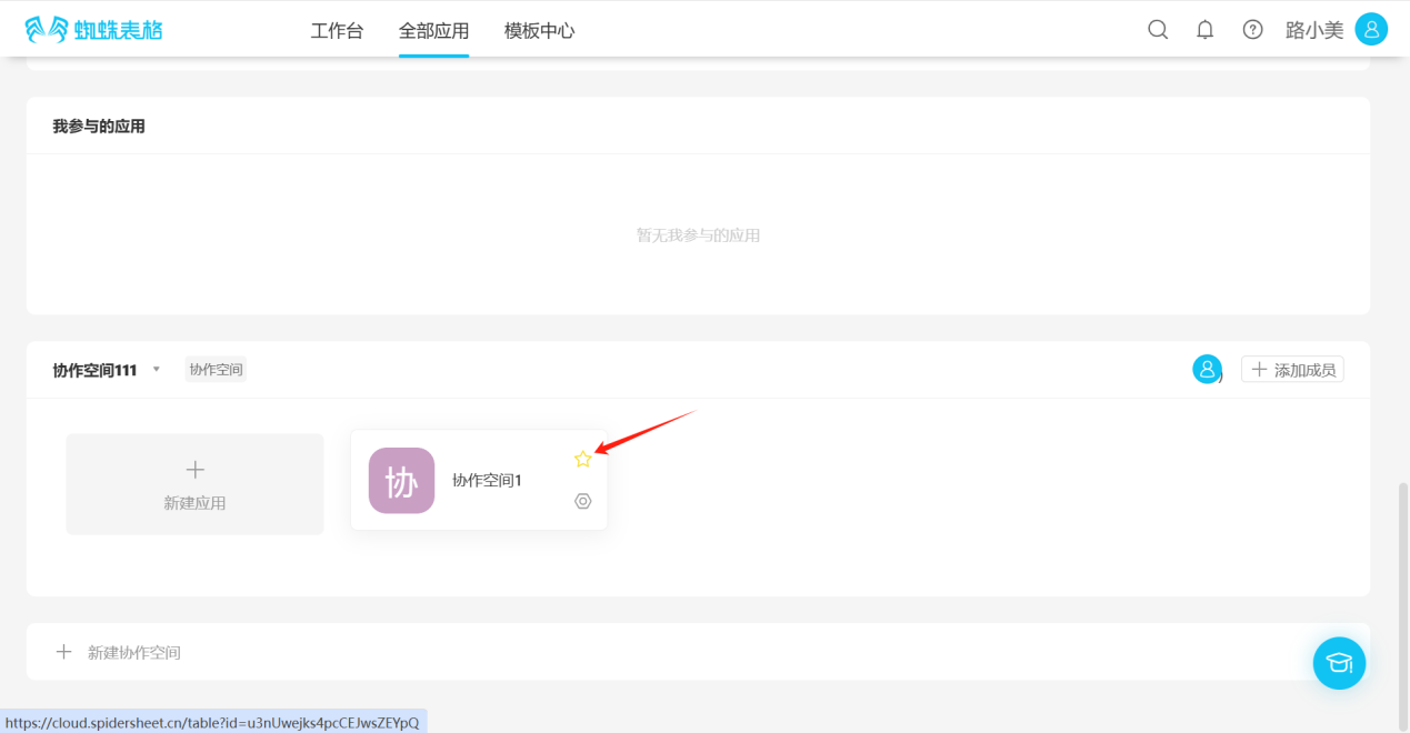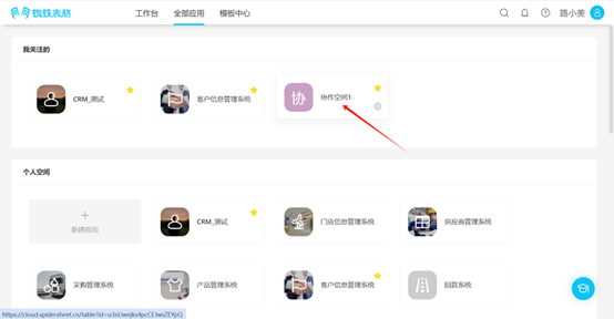 - All Applications → Collaborative Space → Click the "☆" in the upper right corner of the application you want to follow, the icon changes to "★", indicating successful follow.