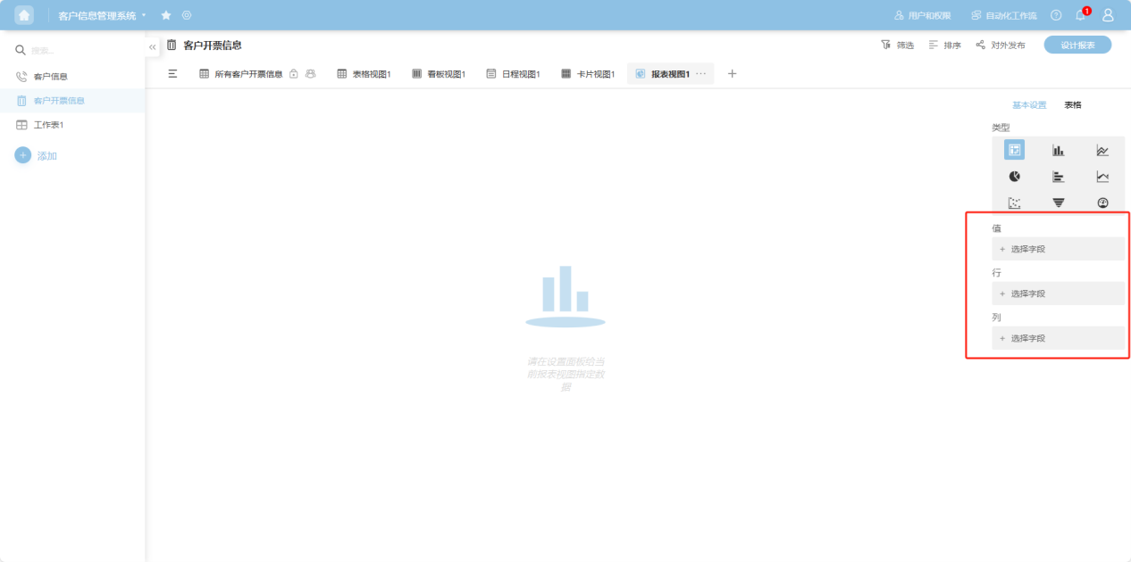 Step 4: For different chart types, select the required fields accordingly.