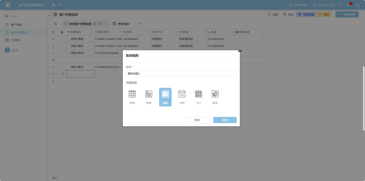 Step 2: In the pop-up window, select "Kanban", name it, and click "Confirm".